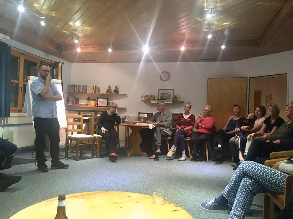 Tijdens een van de workshopavonden over de filosofie van Karl Jaspers. Oktober 2019, bij Casa Clarezia in Waltensburg (Zwitserland)
